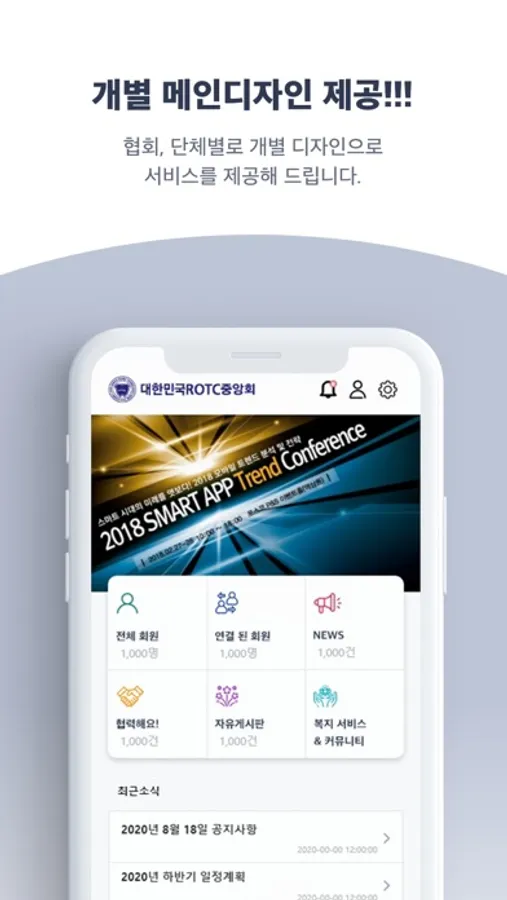※ 협회, 단체별 별도 앱으로 서비스 되기를 원하신다면 별도 문의 주세요!!!