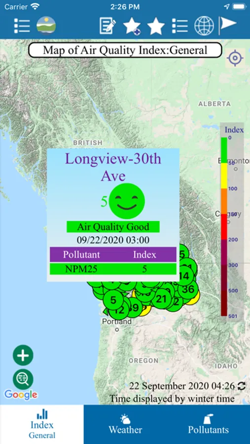 Washington State Department of Ecology’s Air Quality Program maintains an air-monitoring network to accurately measure air pollution and meteorology conditions around the state in partnership with EPA, tribes, and local clean air agencies. We use this smart phone app to inform the public about current air quality conditions and provide guidance that people can use to protect their health when air quality is not good. Most recently collected data have yet to be thoroughly reviewed for validity and should be considered preliminary. Visit the full website for more information: https://enviwa.ecology.wa.gov/home/map