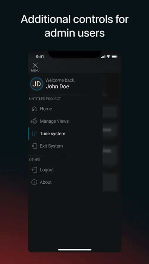 Connect to a system by scanning the network in the Home page, or simply tap the Scan QR Tag button to open the control interface.