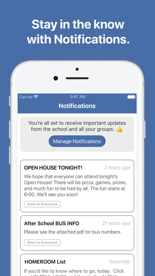 - Get personalized notifications reminding you about events and schedules that are important to you.