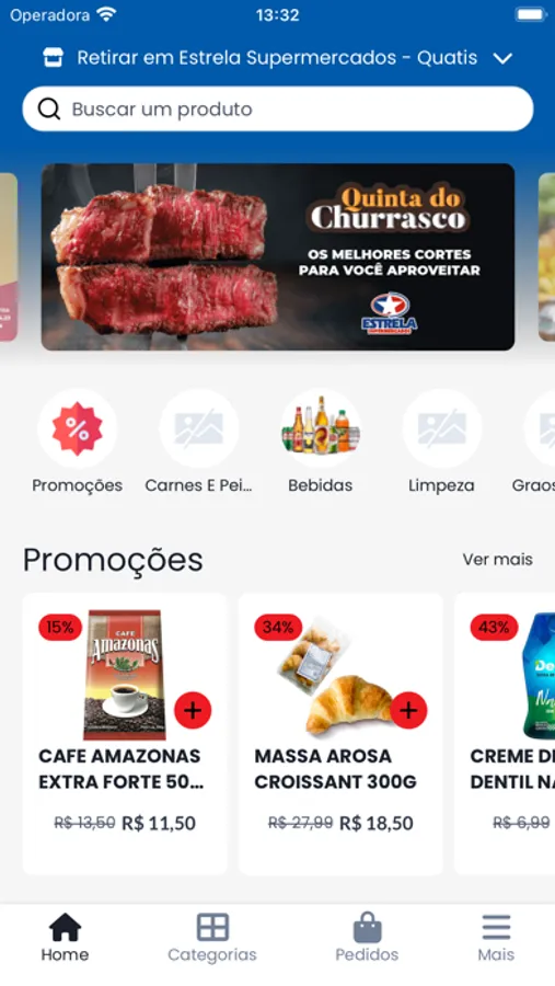 O aplicativo Estrela Supermercados oferece um amplo conjunto de funcionalidades com um visual moderno e intuitivo.