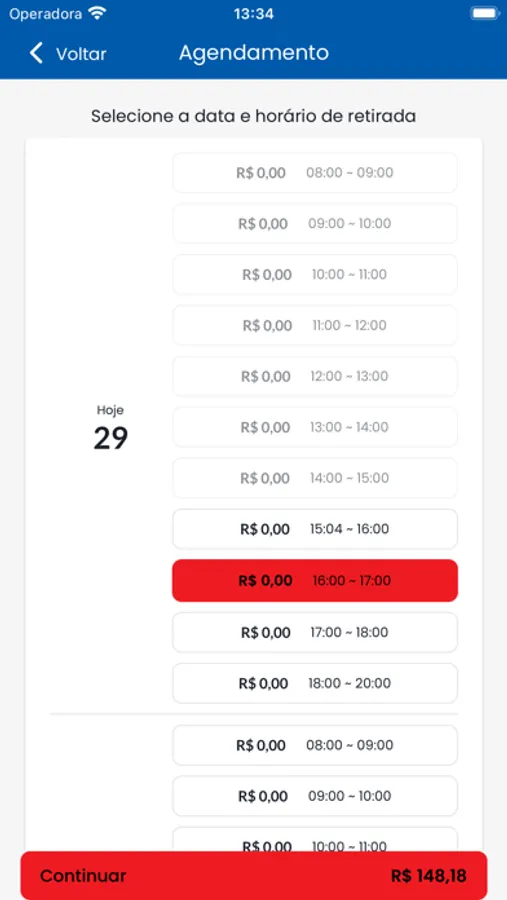 4 - Selecione o horário de entrega ou retirada.