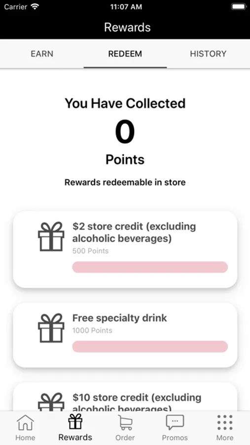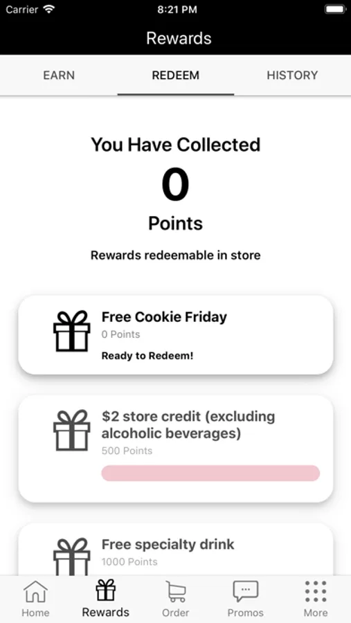 - View available rewards and track progress for future rewards