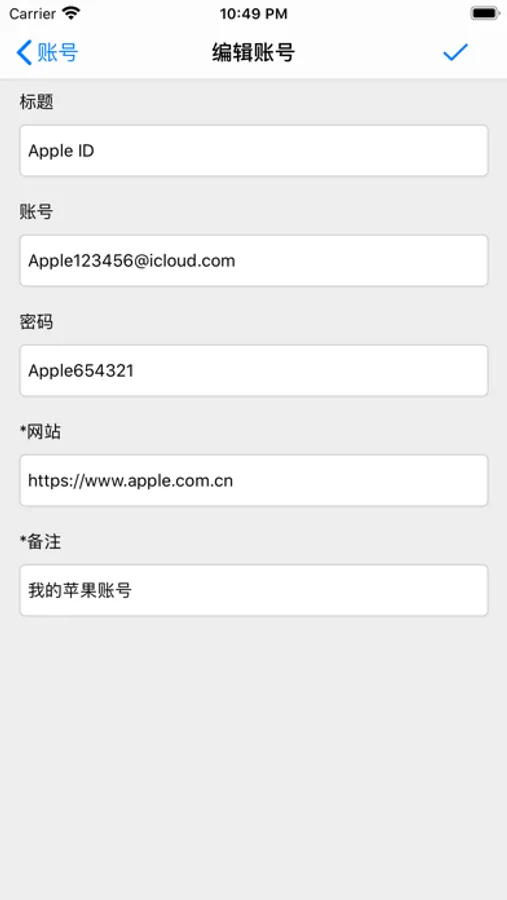 密码保险箱是一款能够管理多种账号信息的App,拥有以下主要特点: