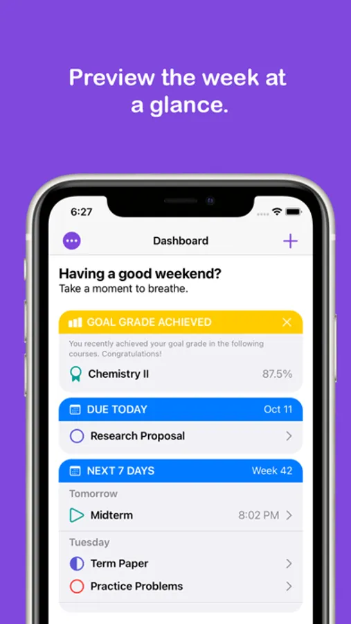 Supercharge your work with Pupl! Create courses and add in your assignments. Pupl keeps you on track and reminds you when you have assignments coming up, and gives you smart suggestions about what to work on and when.