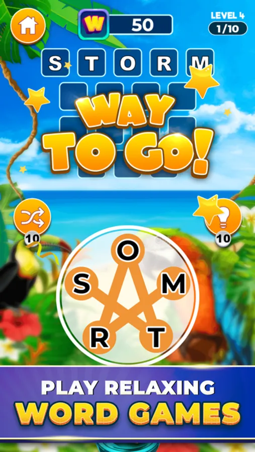Each uniquely themed level has 10 super fun word games waiting to be solved. Match and shuffle letters in top word games to complete each level and unlock surprise treasure chests filled with entries for real prizes. Every word game is easy to play and easy to KEEP PLAYING! In those rare moments where you get stuck, word hints are available as well to keep the word game fun going!