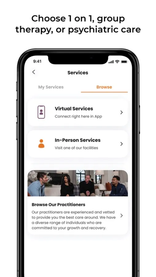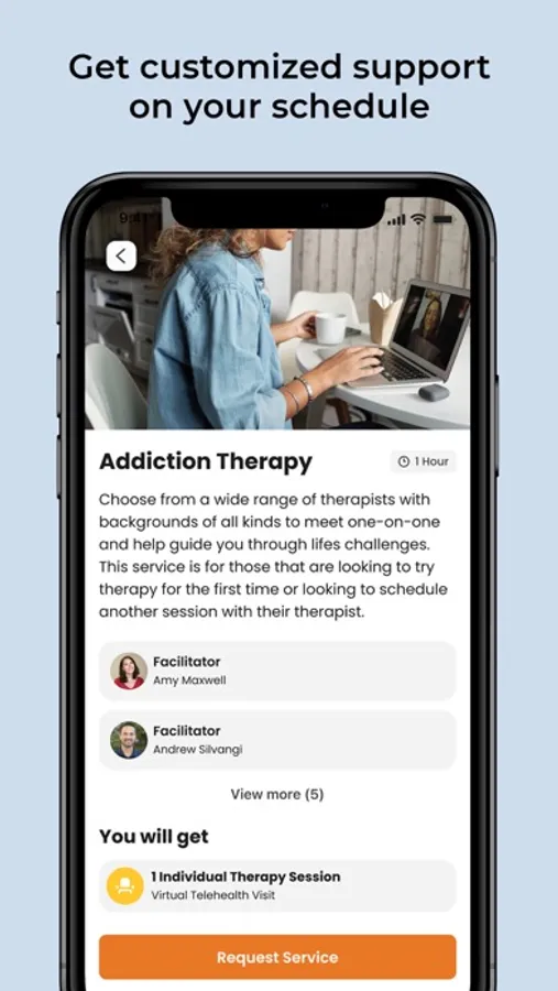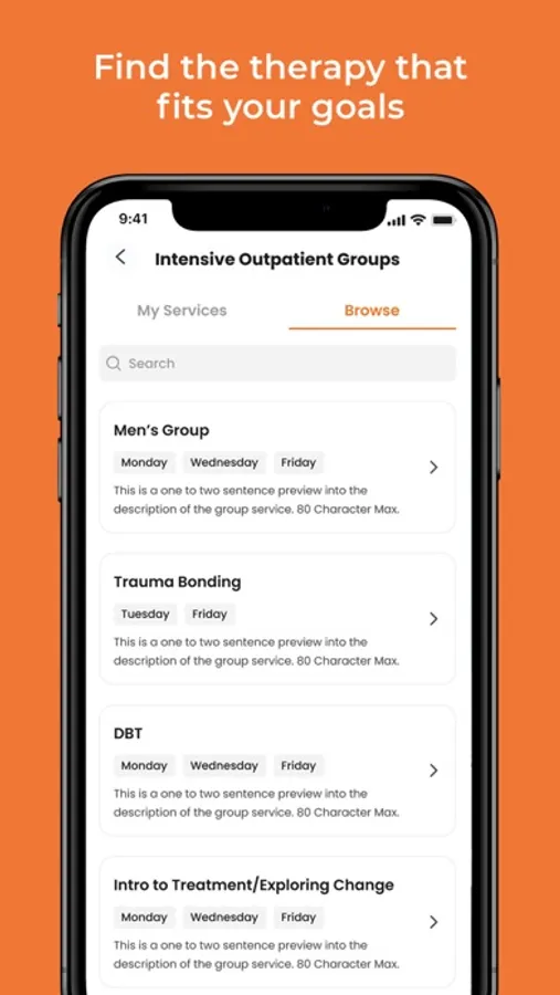 * Browse and join therapy groups, IOP's, individual therapy sessions, and support groups