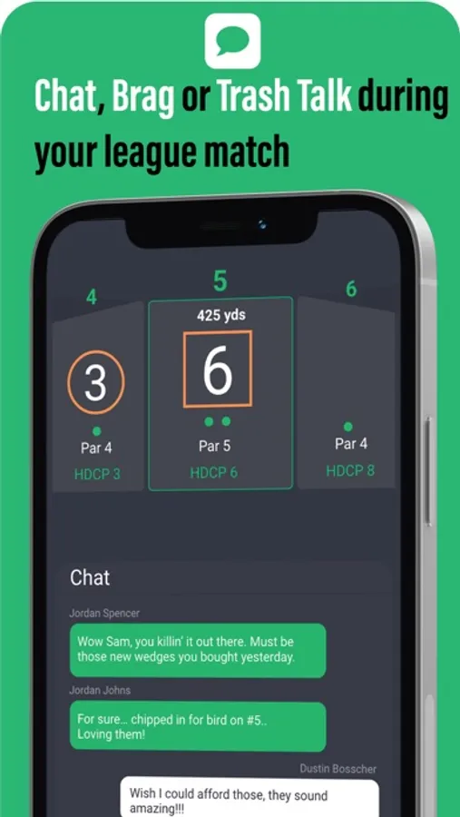 - Did you just get a hole in one, or see your buddy do something funny? Make it known to your league by posting a message using the on-course chat feature.