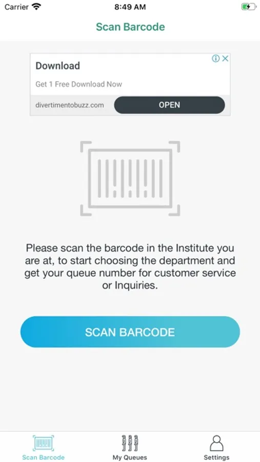scan the barcode in the Institute you are at, to start choosing the department and get your queue number for customer service or Inquiries