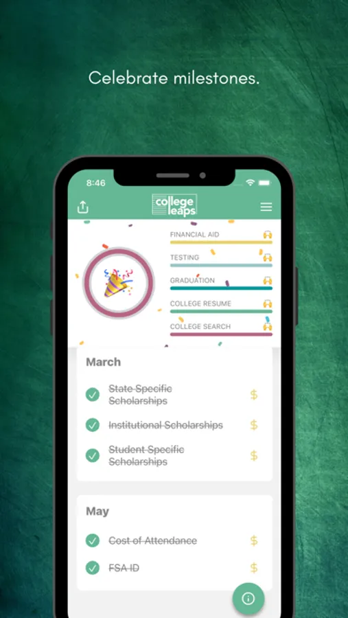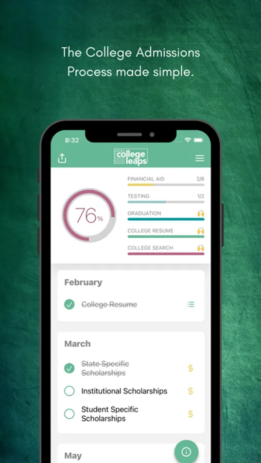 CollegeLeaps is a customized college admissions mobile app designed with the aspiring college student in mind. We take the bewilderment out of college admissions by providing you with a customized college journey encompassing your junior and senior years.