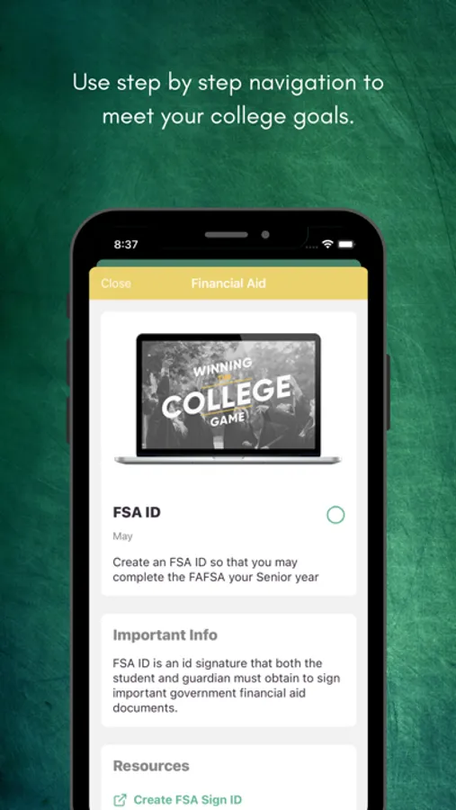 • Shareable accounts so that your family, friends, and teachers can monitor your progress and encourage you on your college journey.