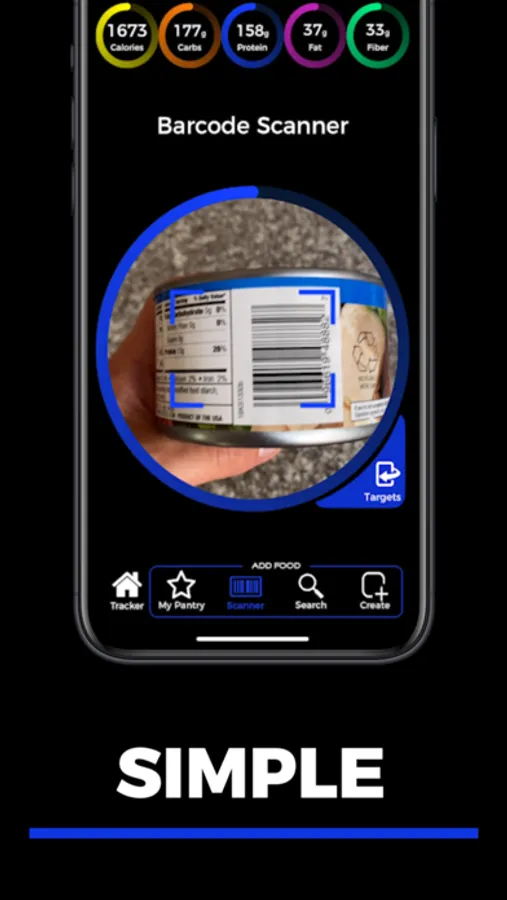 Scanning food package bars codes and adding food to your meals is as fast as a single tap.