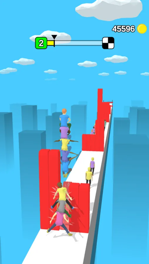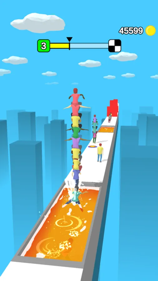 Get as many people to the finish line! Swipe left and right to move your stack and add more people to it. Then sacrifice them to cross the different barriers and pass through!