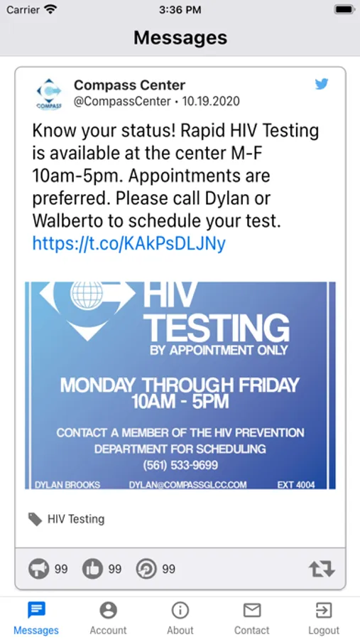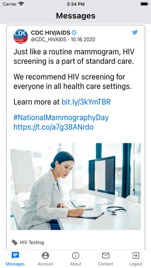 ARMT-HIV app has been specially developed for public health or community health practitioners to promote HIV prevention and testing. This App attempts to increase the timely dissemination of health information and to provide actionable content for the audiences to make behavioral decisions. ARMT-HIV offers you a simpler, quicker way to get, send, and manage messages about HIV prevention and testing. We will harvest, analyze, and recommend social media messages promoting HIV testing, PrEP use, and condom use. You will receive several recommended messages per day, and you can check these messages and repost them all through the ARMT-HIV app.