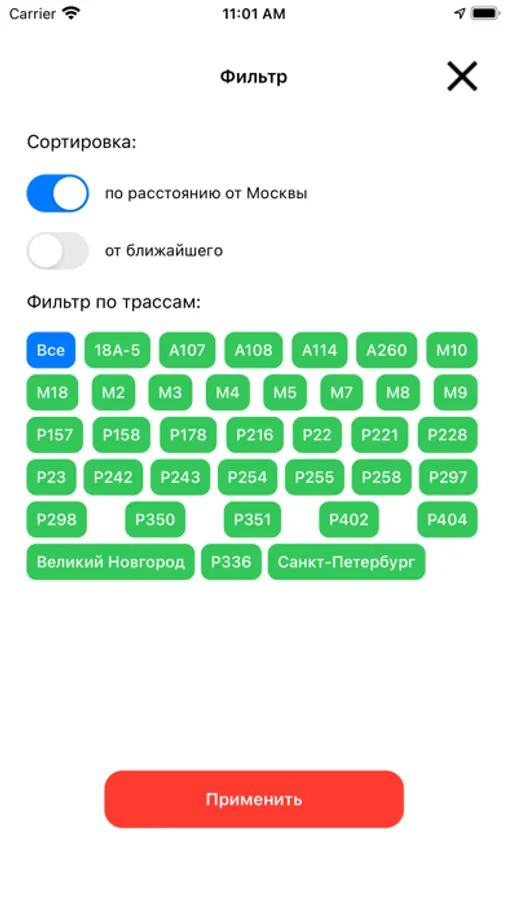 Удобный поиск по местоположению водителя, а также по городам и по удаленности от Москвы.