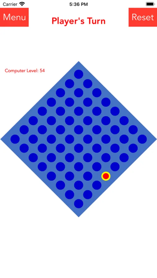 Play Diagonal Two Squared against a level 0-100 computer with two players on the same device, and now play with friends over iMessage! Diagonal Two Squared is a game similar to Connect Four but essentially with the board rotated at 45 degrees. This allows for play on two "sides" from the start instead of the original game, on which you only play only along the bottom. The app allows for two players to play on the same device, to select a level from 0 to 100 computer to play against, or to play with friends over iMessage.