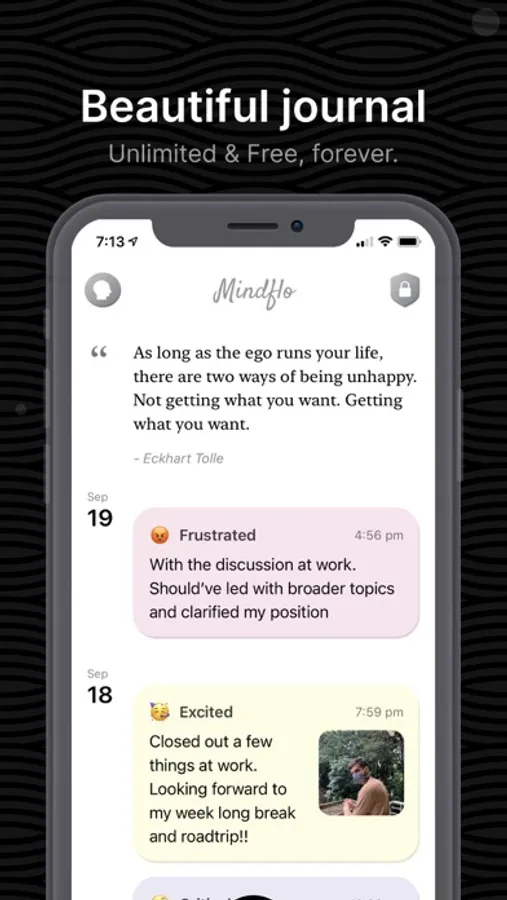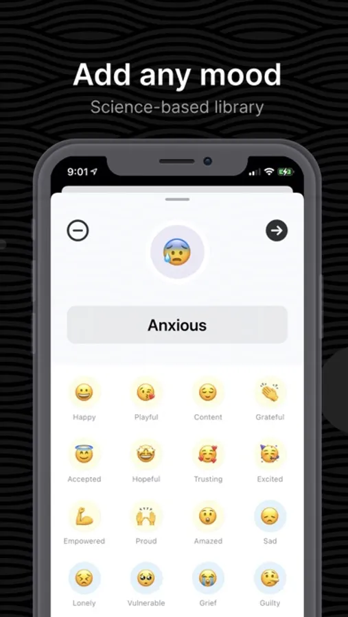 Mindflo has a vast set of moods for you to capture how you exactly feel every day easily. You can even force-tap to reveal more emotion options to go deeper into your emotion.