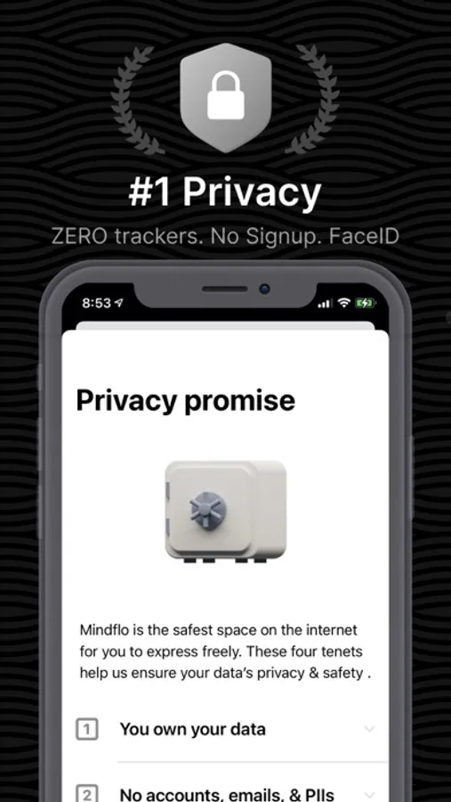 Mindflo is the safest space on the internet for you to express freely. These four tenets help us ensure your data’s privacy & safety.