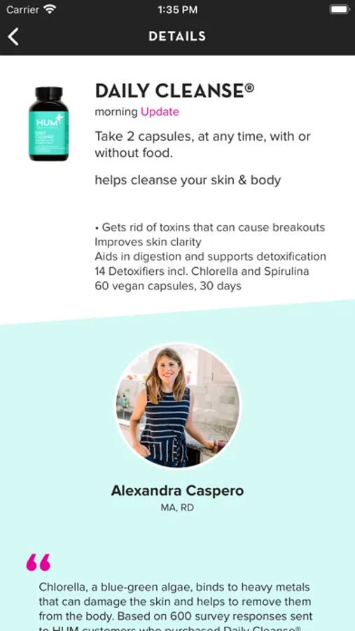 your daily supplement routine, with daily reminders, personalized RD Nutritionist tips + useful information