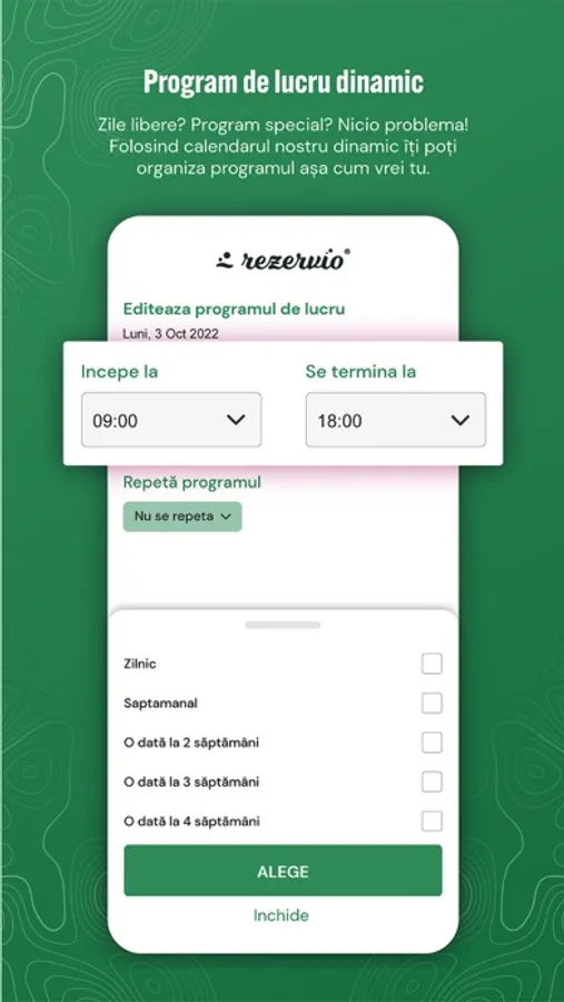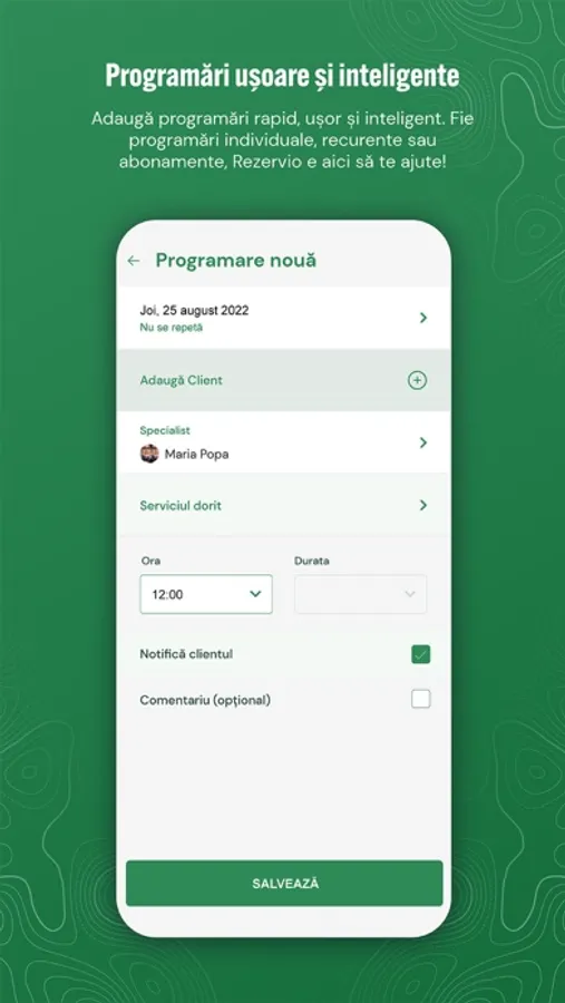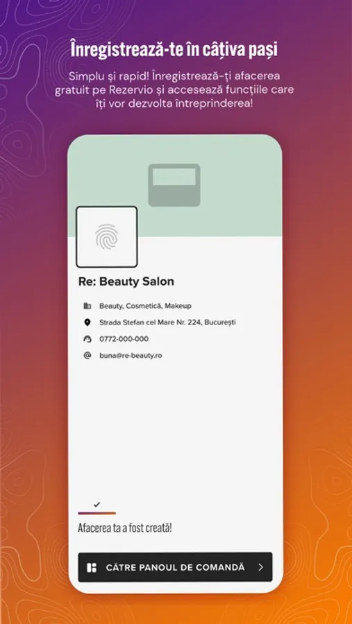 Ai un business în care depinzi de rezervari din partea clienților tăi și iti doresti sa iti administrezi afacerea din mers? Pentru asta exista Rezervio Business. Din cateva clic-uri, iti vezi toate rezervările, calendarul de lucru și îți poți organiza munca așa cum iti doresti și ești non-stop la curent cu evolutia afacerii tale.