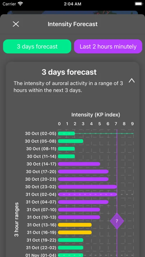 Auroras Forecast helps to find the best location where to see auroras in real time.