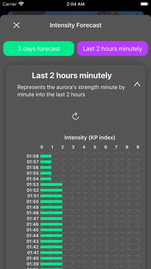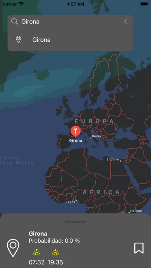 * Quickly see the current probability of seeing auroras in any place in the world.