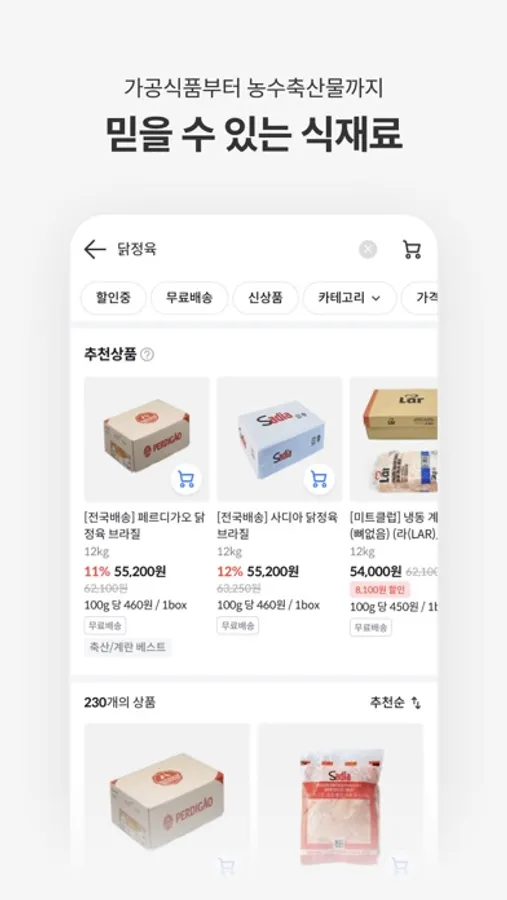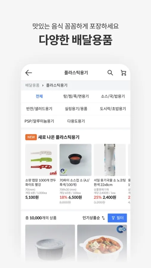 - 신선한 농·수·축산물은 물론, 배달용기·봉투 등 포장용품부터 프라이팬·가위와 같은 주방용품까지