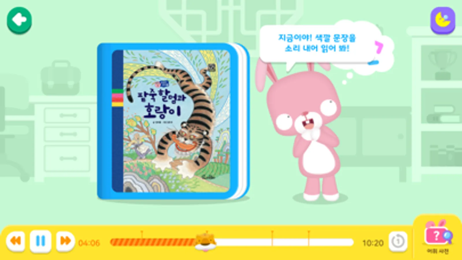 전문 성우들이 읽어 주는 실감 나고 재미있는 옛날이야기를 듣고, 이야기 속 주인공의 대사를 직접 말해 보고, 가족이나 친구들과 함께 녹음하면서 언어 표현에 대한 자신감과 즐거움을 느낄 수 있어요.