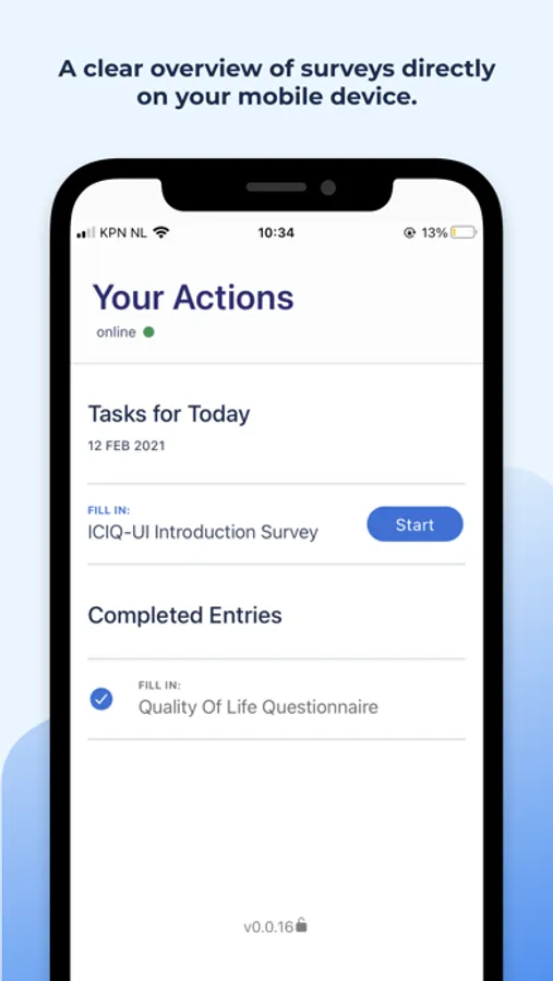 Castor Connect enables study participants to complete Castor Surveys (ePRO questionnaires) via a native mobile application.