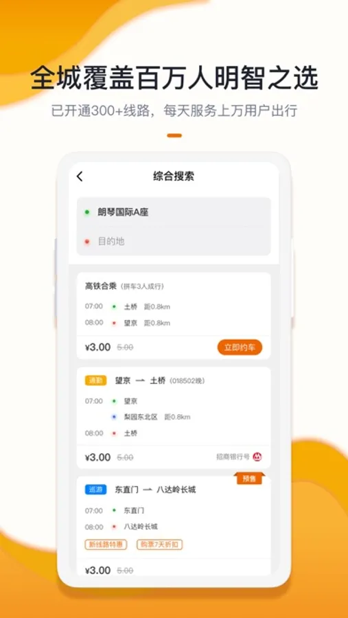 1、通勤商班:已在全市开通500+线路,覆盖北京重点居住商务区域,准点到达率超95%,服务百万市民每日出行乘坐需要