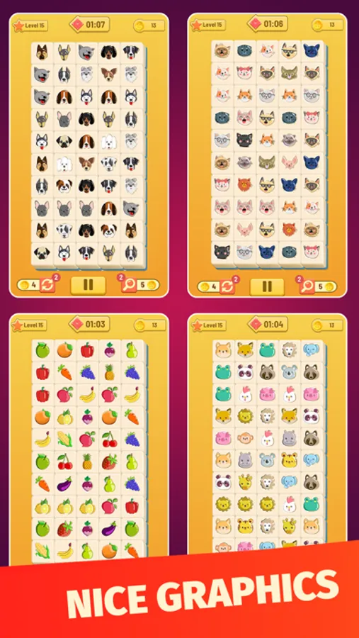 - Onet Connect Classic is many themes and layout to choose from: fruits, jewels, animals, cake, candy, autumn, winter, kitchen, wardrobe, flowers...