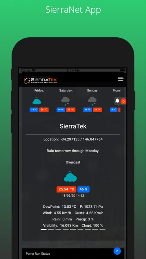 With the cloud-based SierraNet platform you will be able to monitor, manage, and control every aspect of your operation from your smart device or computer, from wherever you are in the world.