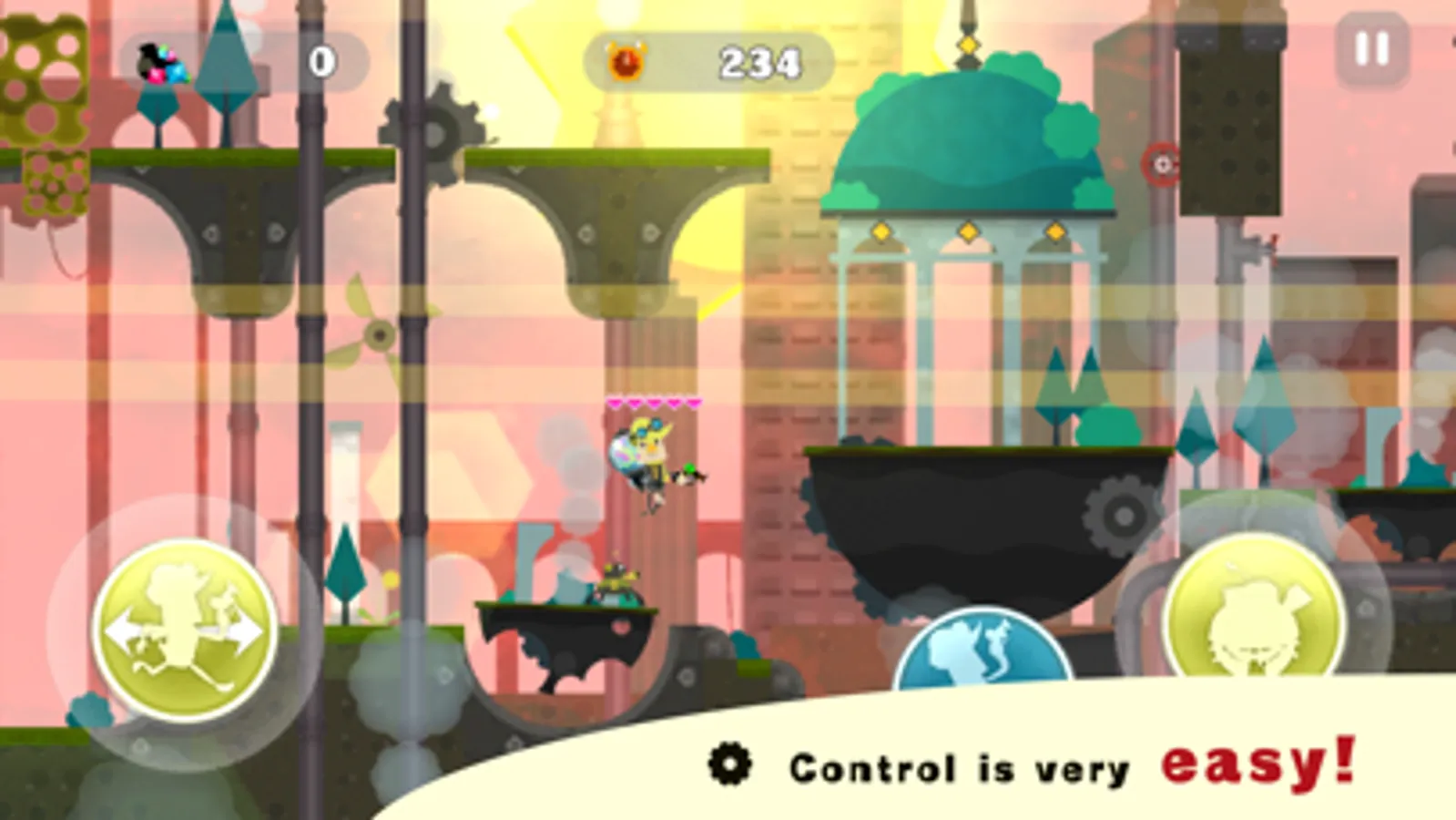 A beautiful and quirky world awaits the player, with refreshing breezy meadows, snowy fields, and rainy mechanical towns. You can even revisit your favorite locations once you have cleared the stages!