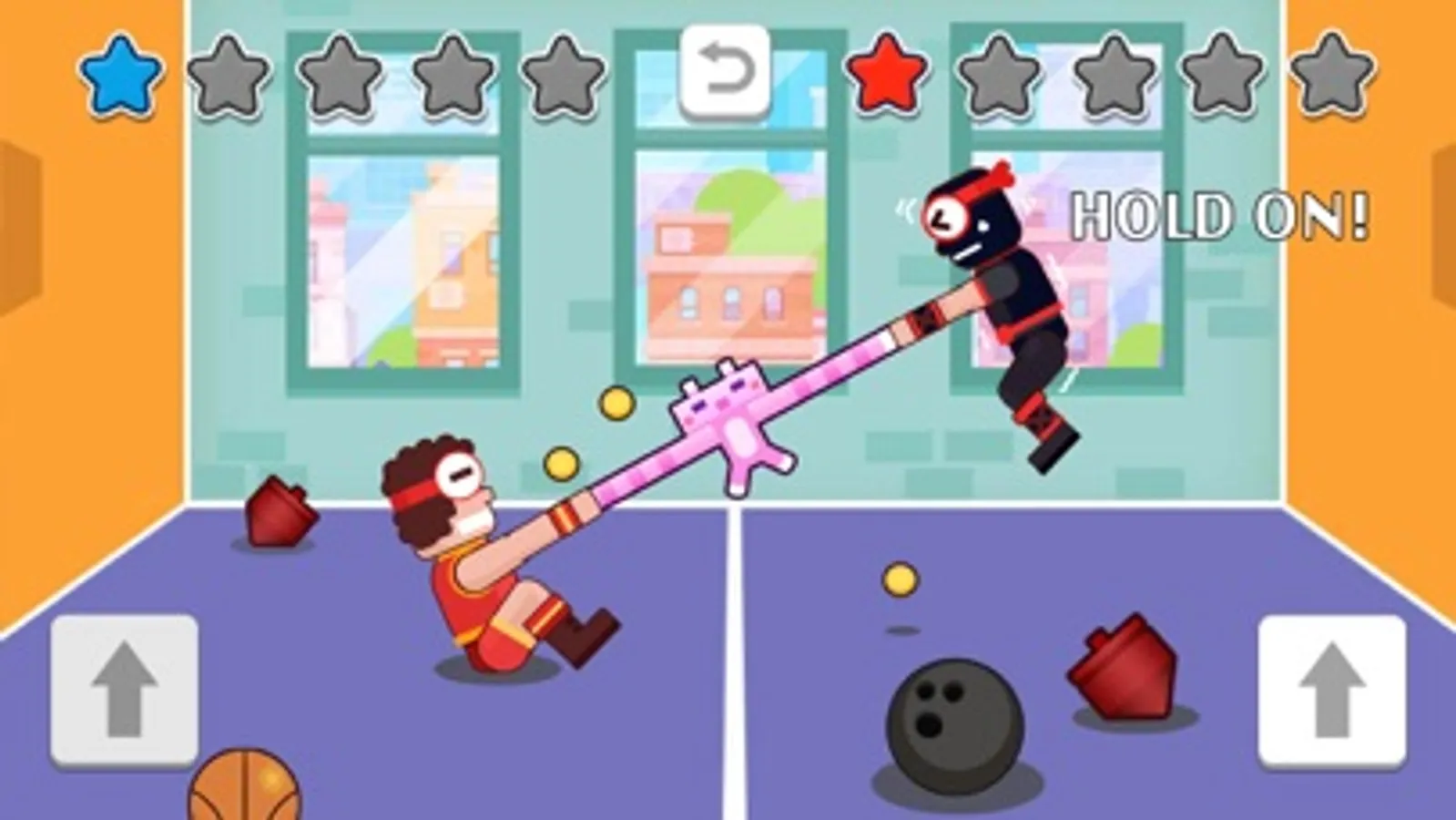 1. Easy and relaxing operation of tapping. Tug opponent over middle line to get the victory.