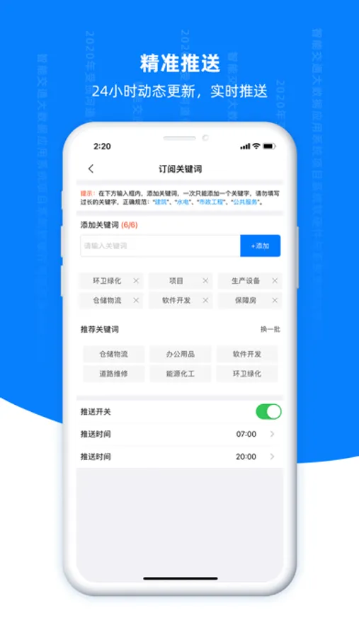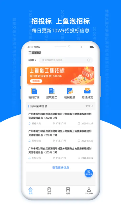 招标推送:全国招标信息随心订阅,随时随地即时推送,定制招标项目批量导出。