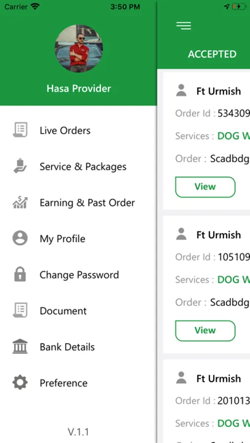 Hasa Provider can manage their services which they want to offer for users and get the services to request from the users.
