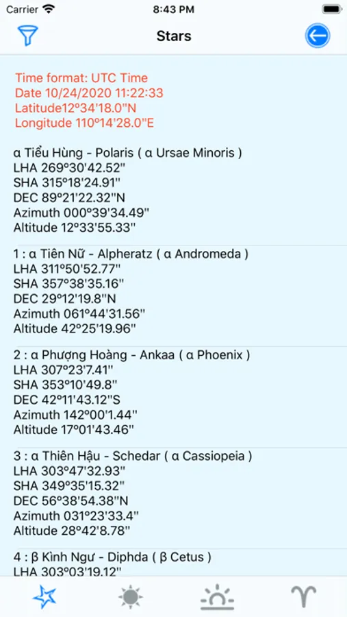 + Correcting marine sextant altitude of sun and stars;