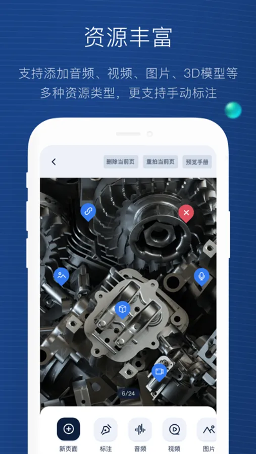一键拍照生成手册页面,添加资源热点,将传统纸质内容与融媒体资源相结合