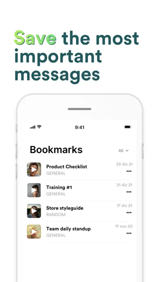 • You can create teamspaces, group chats and 1:1 conversations via video, text or audio