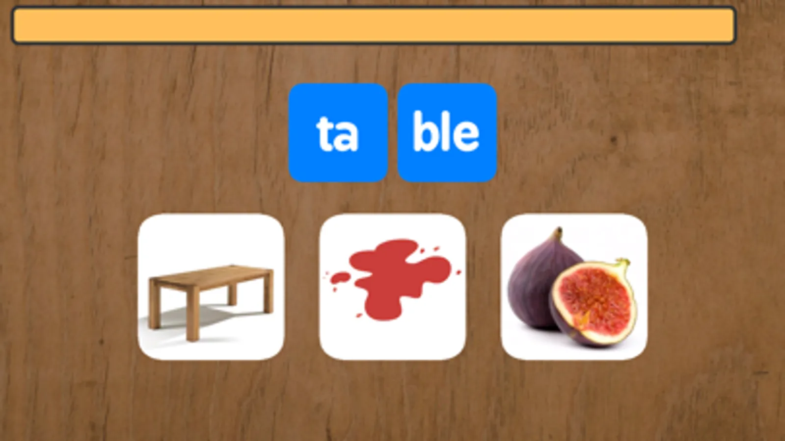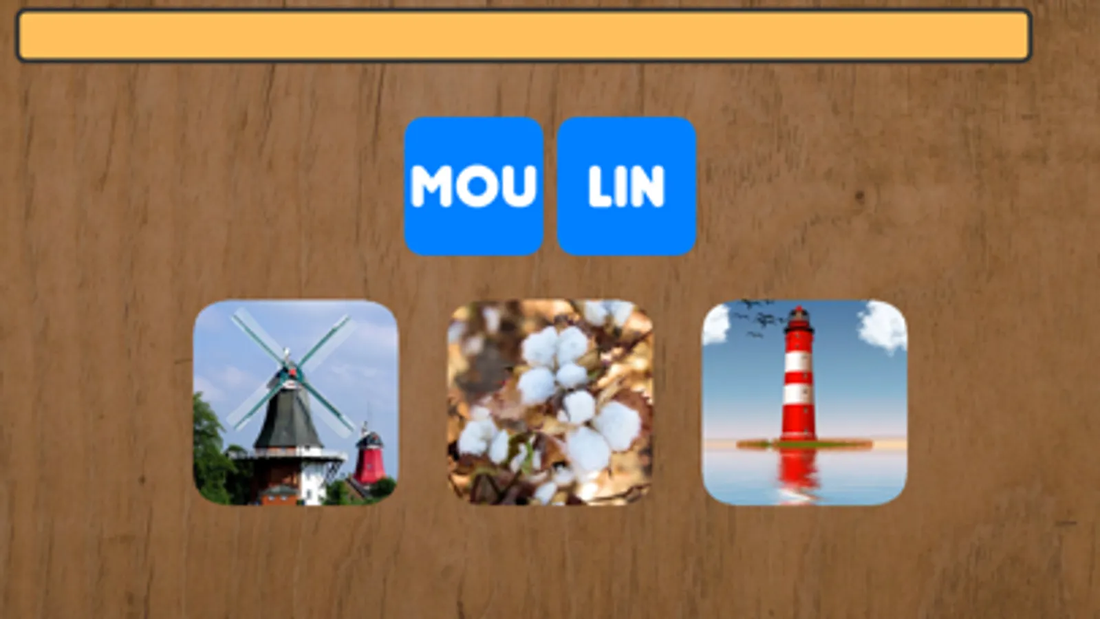 Lisez le mot divisé en syllabes et sélectionnez l'image correspondante. Lorsque vous sélectionnez la bonne image, vous pouvez passer au mot suivant.