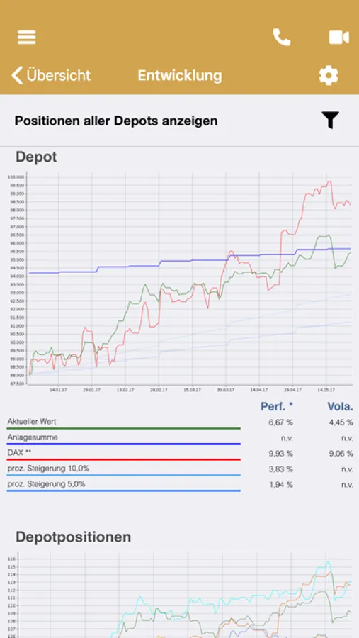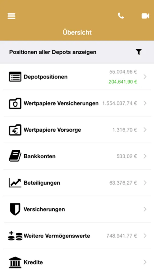 - Konsolidierte Vermögensübersicht inkl. aller Fondsanteile, Versicherungen, Beteiligungen und Bankkonten
