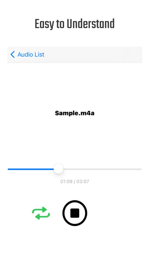 This is the simplest audio file player ever. The only things you have to do is select audio file and tap play button. Never complicated, easy to understand.