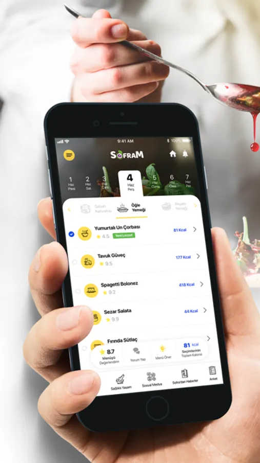 Müşterilerimizin kullanımına sunduğumuz bu uygulamada lokasyona özel servis edilen yemek menüleri tüm besin değerleri ve alerjen bilgilendirme detaylarıyla görüntülenebilir. Kullanıcılar menü seçimleri ile günlük besin değerlerini hesaplayabilir, menüleri ve yemekleri değerlendirebilir, yorum ve önerilerini paylaşabilir ve anketlere katılabilirler.