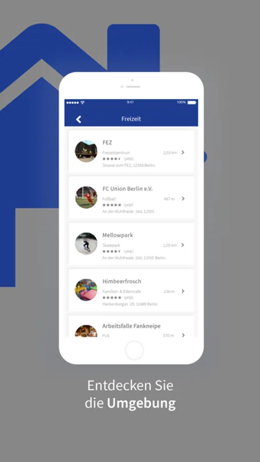 Informieren Sie sich z.B. über Geschäfte, Ärzte, Erstatten und über die Öffnungszeiten in Ihrer unmittelbarer Umgebung.