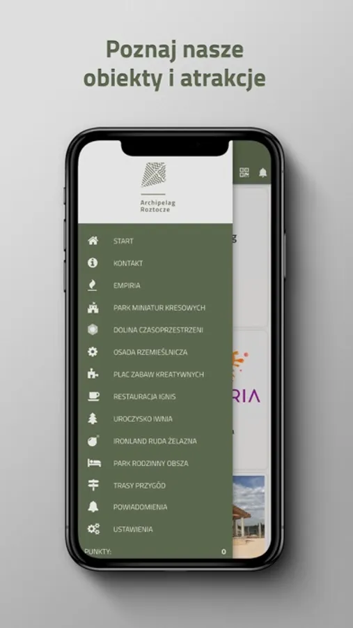 W części informacyjnej aplikacji znajdują się wiadomości na temat obiektów Archipelagu Roztocze, które w łatwej i przyjemnej formie odkryją przed wami swoje tajemnice. Na obiekt Archipelagu Roztocze w Budach koło Zamościa składają się: Empiria Zmysłów i Żywiołów Roztocza, Park Miniatur Kresowych, Osada Rzemieślnicza ze Starą Kopalnią, Regionalny Jarmark Różności, Dolina Czasoprzestrzeni i Park Zabaw Kreatywnych. Aplikacja dostarcza również instrukcje obsługi urządzeń w Empirii.