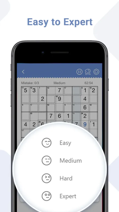 1. Sudoku puzzles come in 4 difficulty levels - easy Sudoku, medium Sudoku, hard Sudoku and expert Sudoku! Perfect for Sudoku beginners and advanced players!