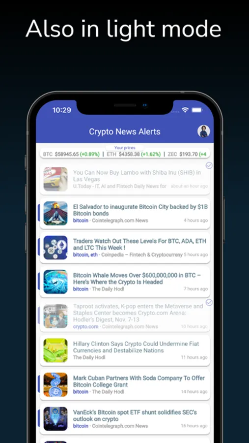 You don't need any crypto news widget, the application will send you the notifications in real time, keeping you informed of all crypto market news matching your keywords. Start receiving cryptocurrency news today, saving valuable time.