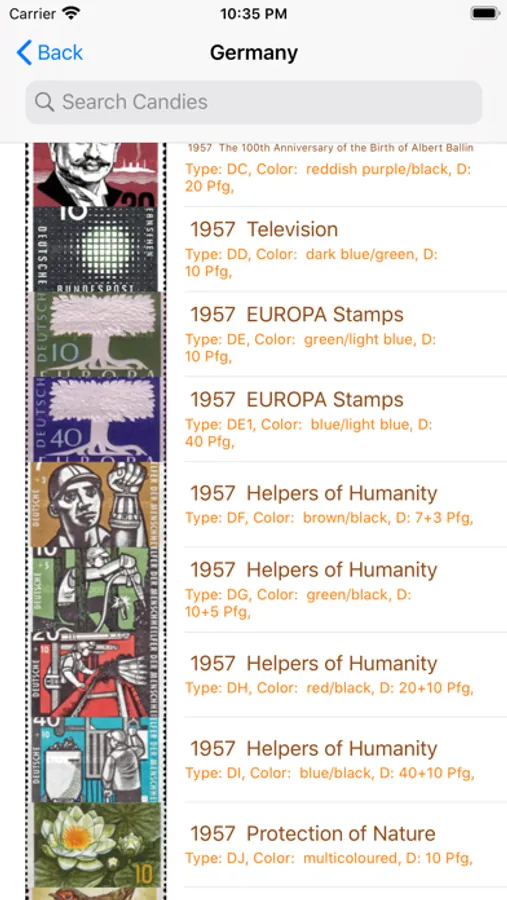- Complete Stamp Catalogue: Discover a vast collection of stamps from every country in the world, each with a detailed image and key information, such as denomination, issue date, and history.