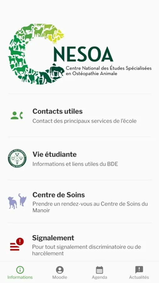 Elle vous permet d'avoir accès aux numéros utiles du centre, d'avoir un accès rapide à la prise de rendez-vous du Centre de Soins, de vous connecter à votre espace Moodle et ENT (application SC-FORM). Vous pourrez également suivre les actualités de l'école.