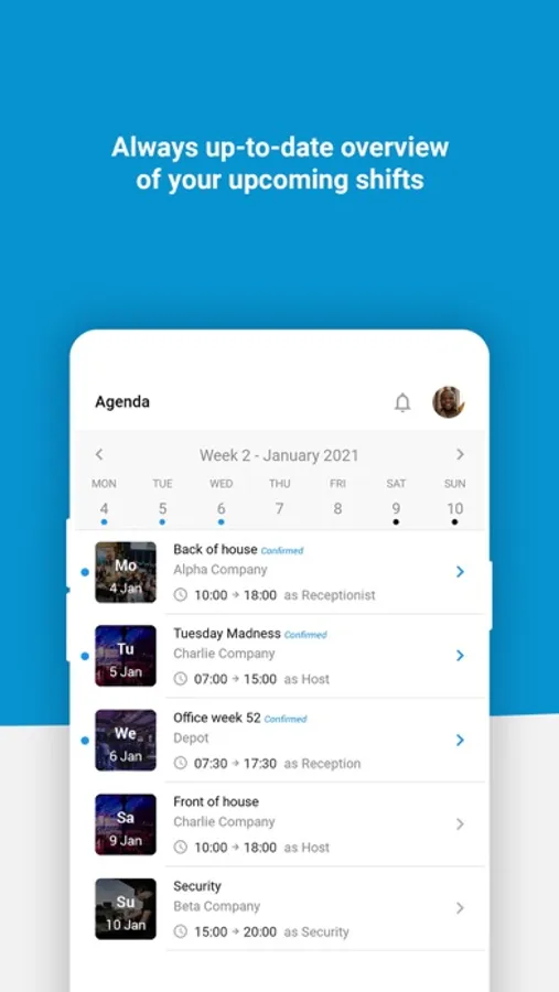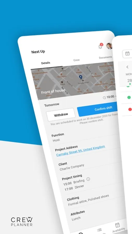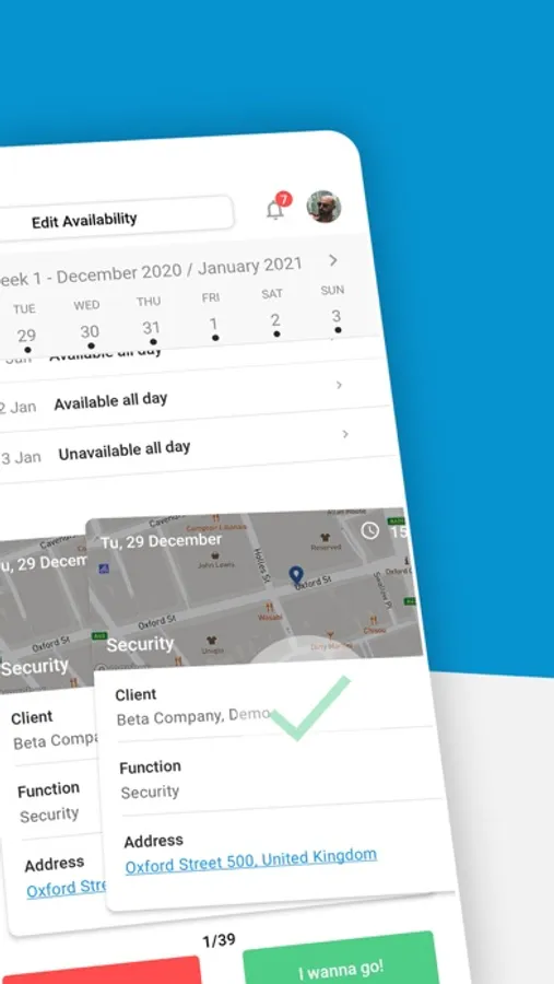 With this application, employees can consult their calendar, pass on availability and arrange all other things that can also be edited via the employee portal.